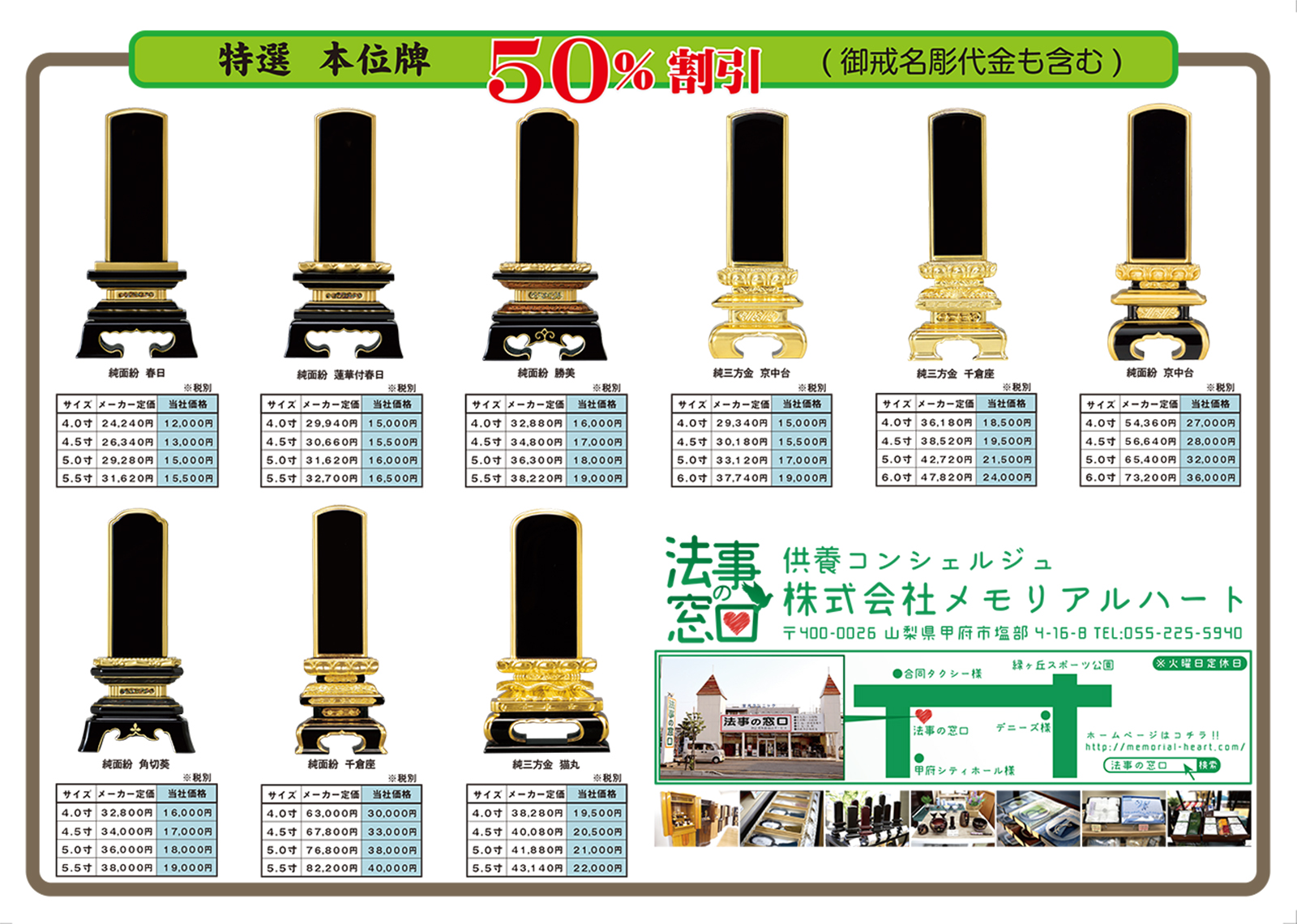 ご購入者の仏具は、「仏壇定価の10%分」を無料といたします。